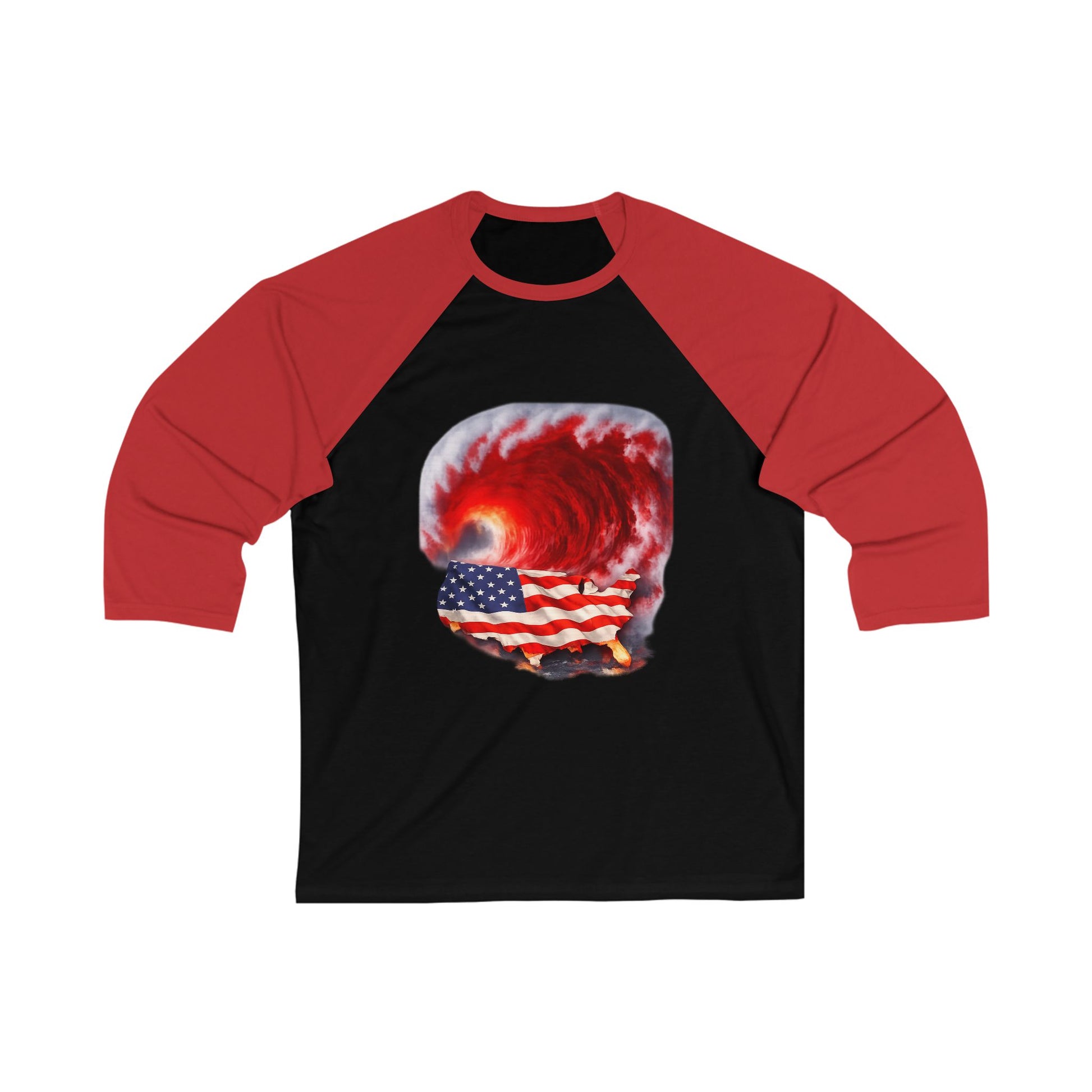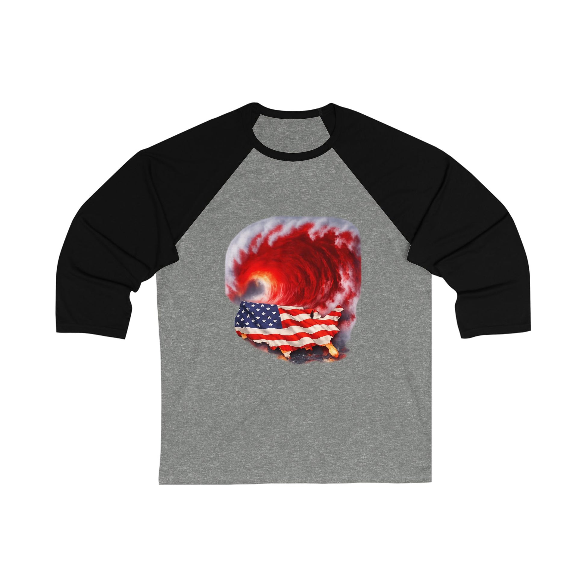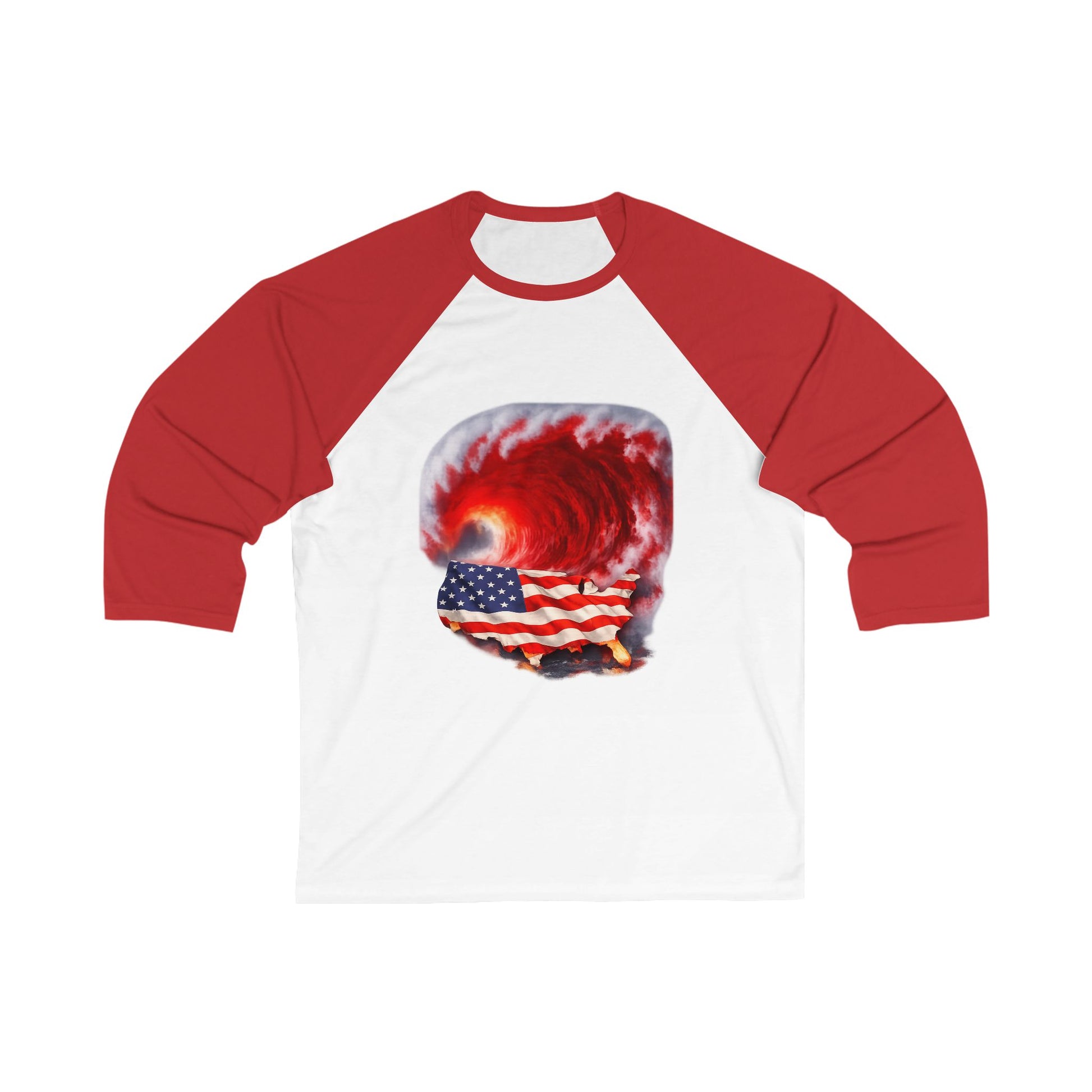 This baseball tee brings a bold, rebellious energy to casual days. The raglan sleeves and contrasting red shoulders frame a dramatic graphic: a swirling red wave that folds into a burned American flag, mixing motion and grit. Lightweight, breathable fabric drapes with a modern cut so it moves with you — whether you’re chasing waves, heading to a rally, or layering up for a firepit night. The tear-away label and ribbed knit collar keep comfort high, while side seams hold the shape wash after wash. It feels lived-in from the first wear, the kind of top you reach for when you want to make a statement without shouting.