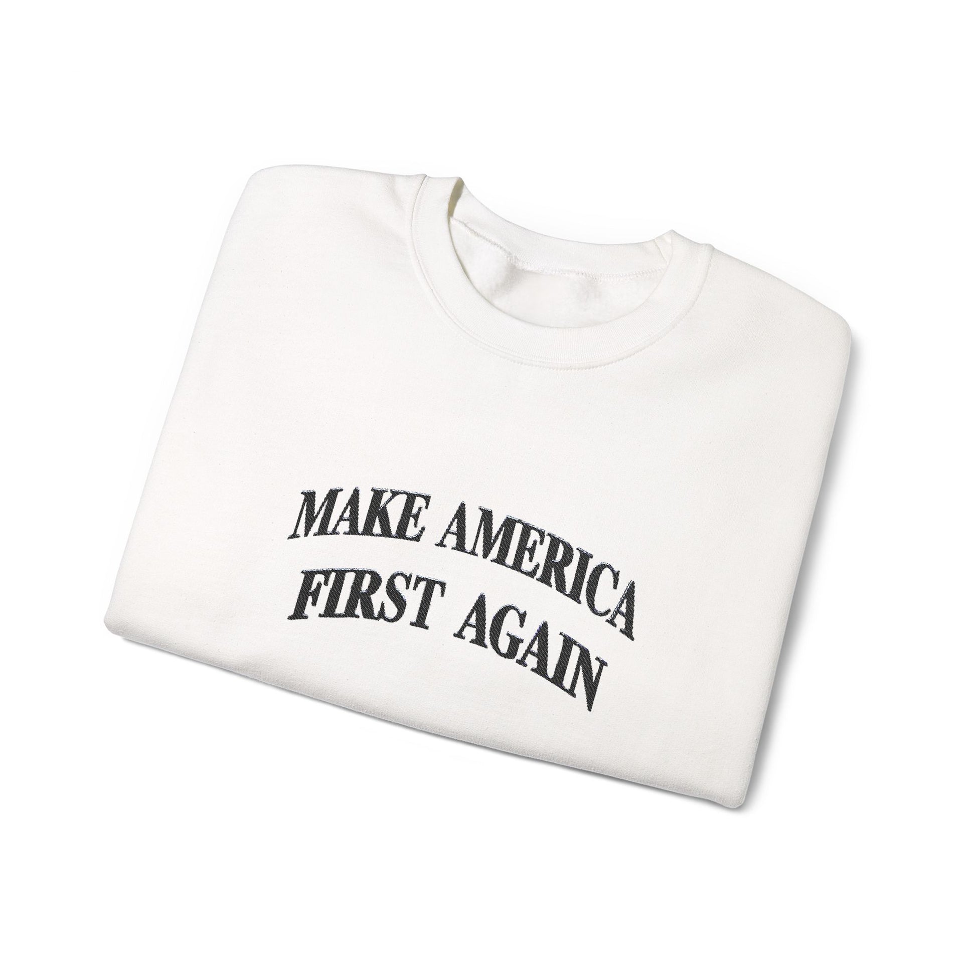 This cozy crewneck sweatshirt carries a clear, bold message stitched across the chest on a clean white canvas. Built from a medium-heavy 50/50 cotton-poly blend, it feels substantial without being stiff — soft inside, structured outside. The classic crew neckline and relaxed, straight fit make it easy to layer over tees or under jackets. Double-needle stitching at stress points and a tear-away label keep it comfortable and long-lasting. The embroidered lettering gives a tactile, handcrafted feel that stands out against the smooth knit. Wear it on cooler days for walks, gatherings, or quiet mornings when you want your clothing to speak plainly.
