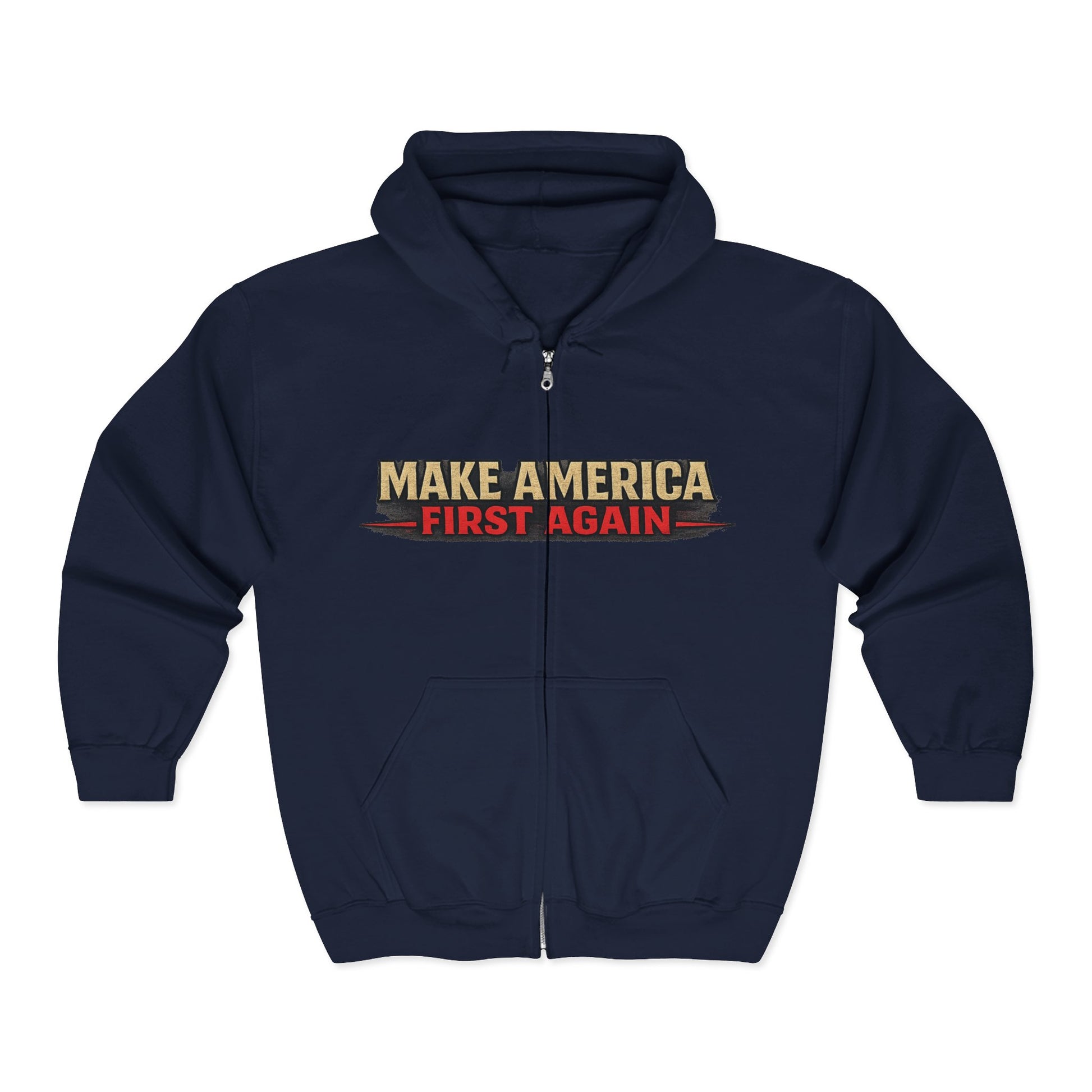 Show where you stand with the Make America First Again Zip Hoodie — because America First isn’t a slogan, it’s a standard. Designed for comfort, durability, and everyday wear, this premium Gildan Zip Hoodie delivers a bold patriotic message while keeping a clean, classic look.