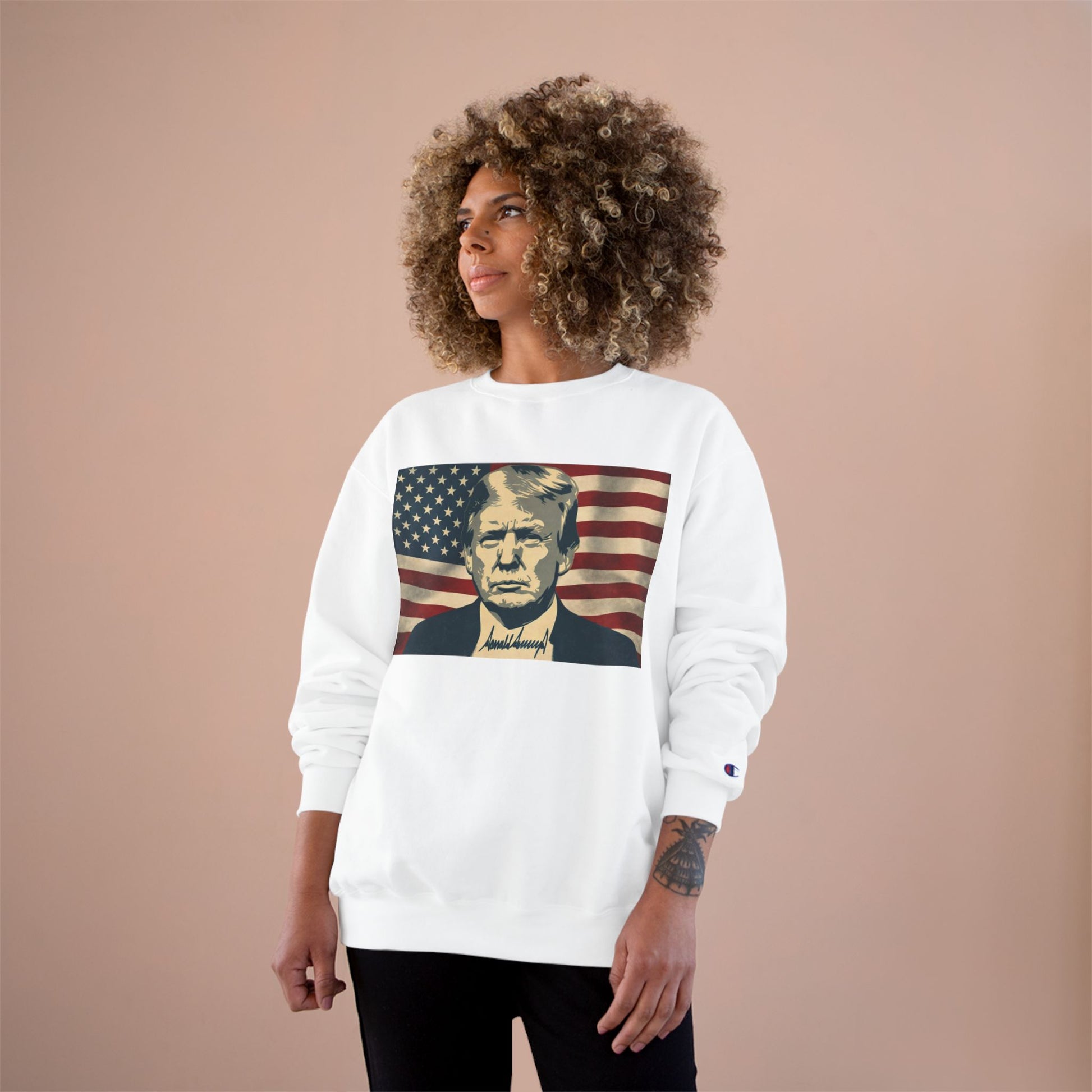 President Trump American Flag Signature Champion Brand Crewneck Sweatshirt