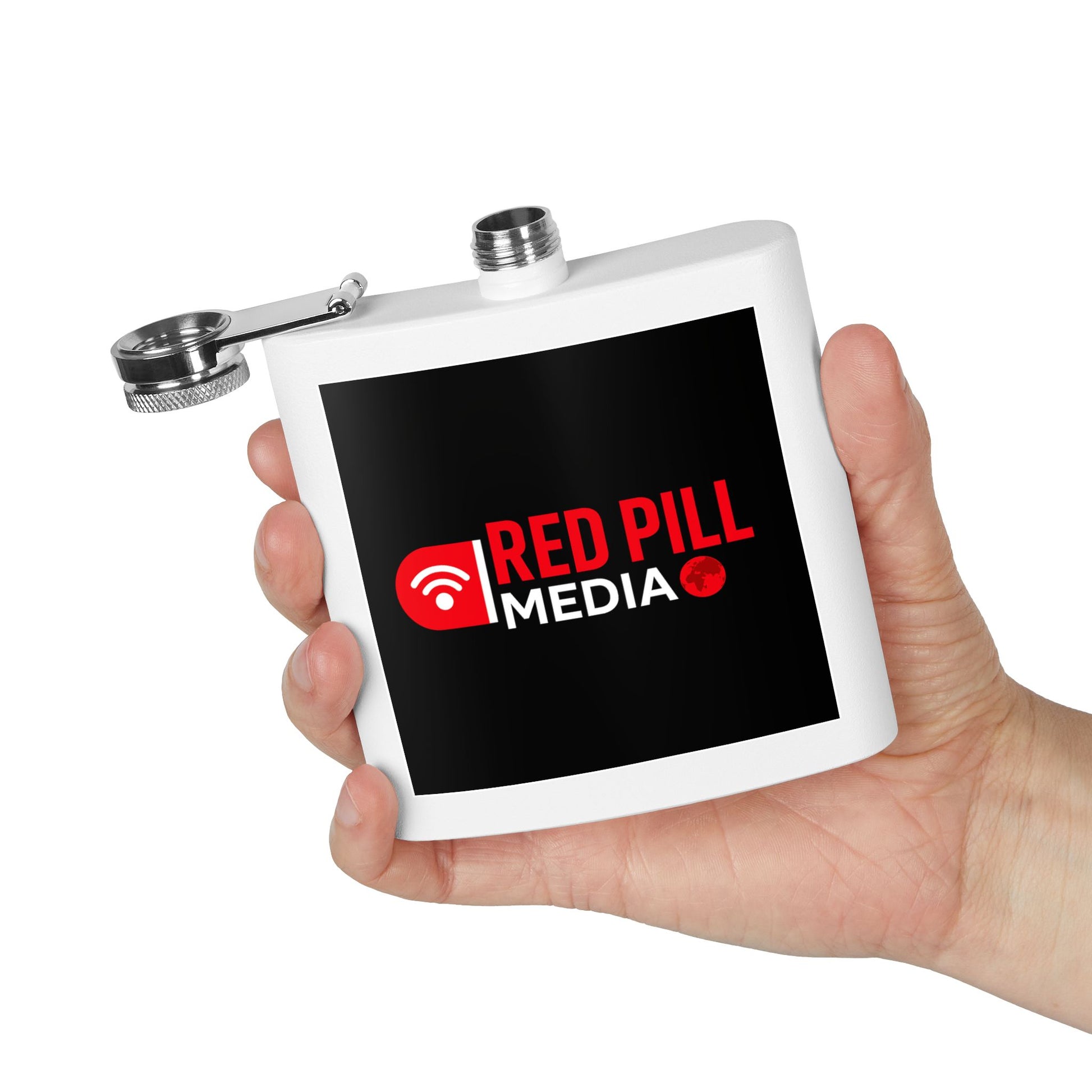 Red Pill Media Logo 6oz Stainless Steel Hip Flask