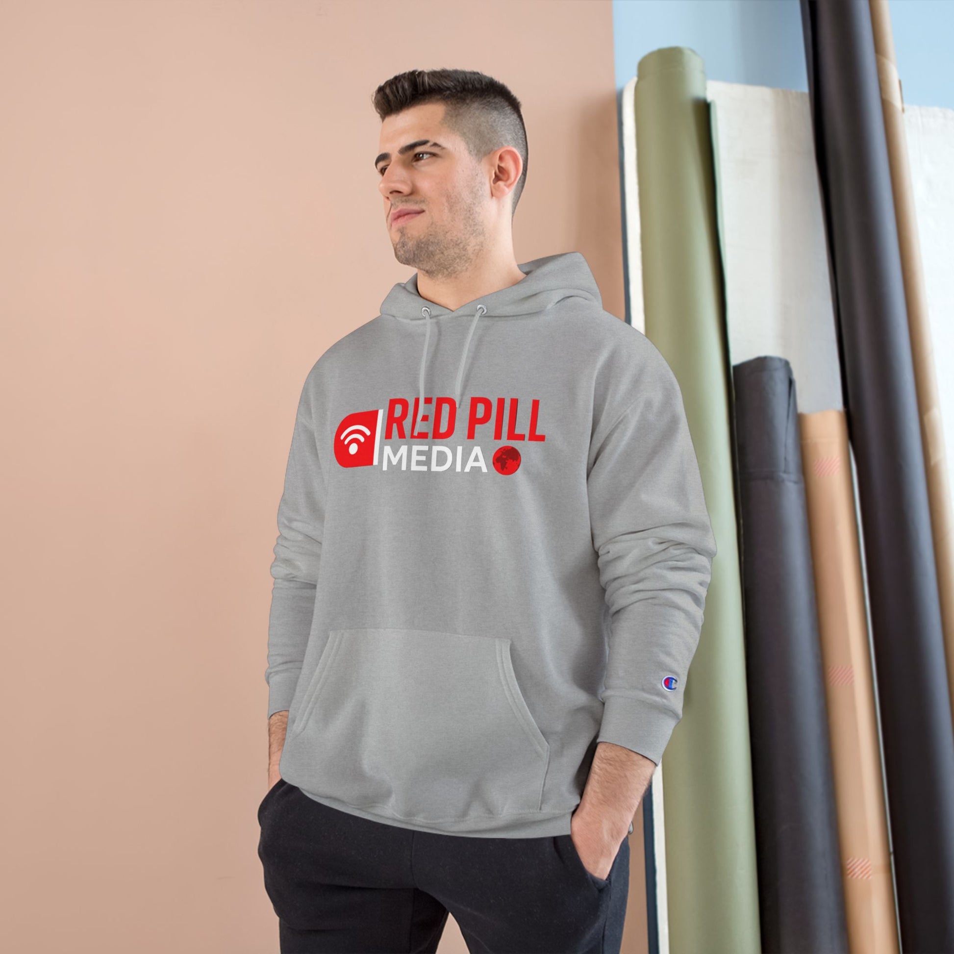 Red Pill Media Logo Champion Brand Hoodie