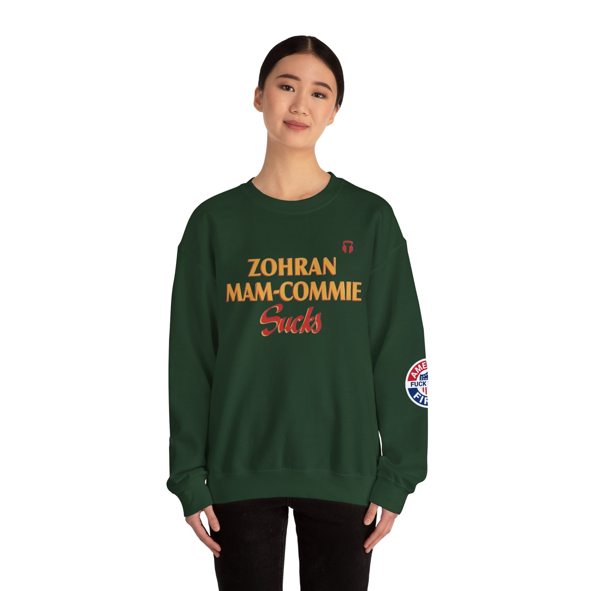 Zohran Mam-Commie Sucks/America First F*CK ISLAM Gildan Brand Crewneck Sweatshirt